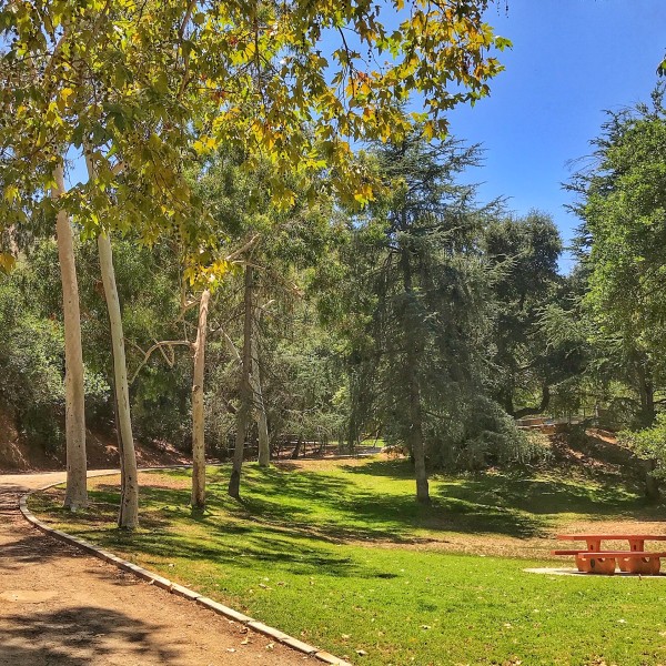 GPS “Spring Canyon”. That’s the name of the parking lot opposite the paved path that leads you up to the exhibits. Atop the walkway you’ll see a large grassy area, picnic tables, and multiple vacant enclosures open to explore.
