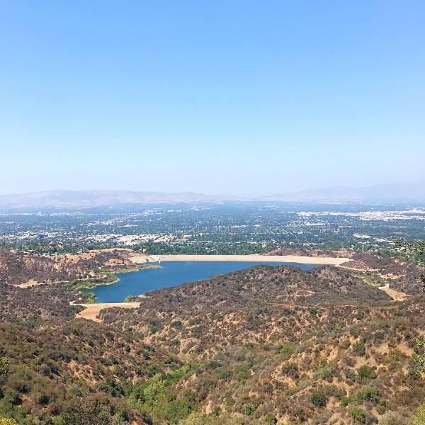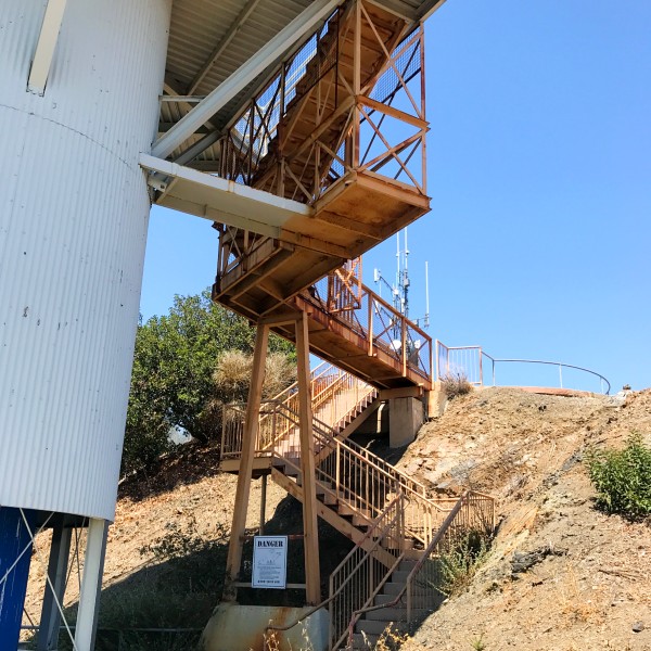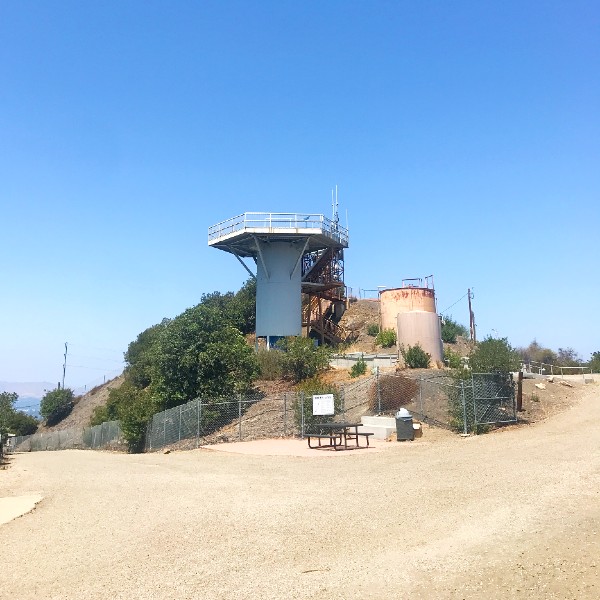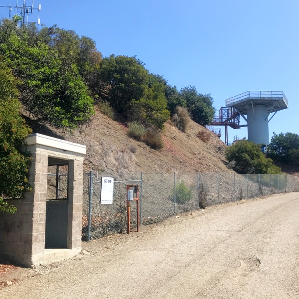 To get to the tower, GPS “Upper Canyonback Trailhead”. Upon arrival, you’ll see a rugged dirt road. Drive a couple hundred yards up the path and park where the other cars are. Then walk between the yellow barrier gate and continue up the fire road about a mile. It’s an effortless path – barely any incline – with excellent Valley views; and for those that didn’t know (another surprise), you’ll see the hidden Encino Reservoir down below. The missile site will become obvious as you approach. Once there, you can enjoy a variety of picnic tables, benches, restrooms, viewfinders, as well as of course the tower itself which has a staircase and large platform on top.