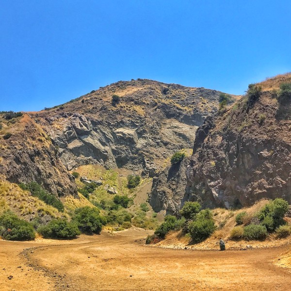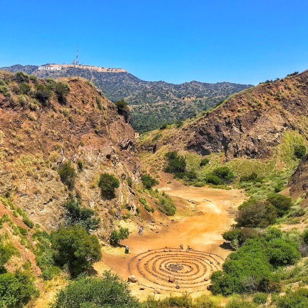Once parked, look for Smokey the Bear (bottom right photo). Follow the bend behind him and walk 5 minutes up the path to the cave. There is a ton of space to wander around. You can go through the entire cave; roughly 50 feet long. On the “exit” side is a spiritual rock circle. The surrounding hillsides are climbable for adventure seekers & photographers. Look to the north for a nice view of the Hollywood sign.