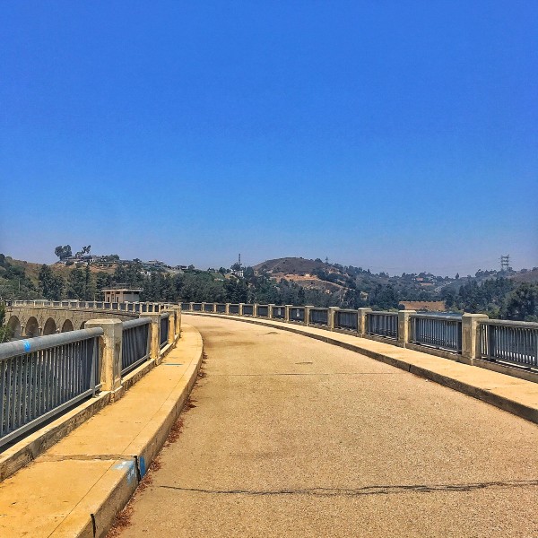 The address listed above takes you directly to the Mullholland Dam entrance where the iconic sign is most prominent. Parking is prohibited, so either come with a companion, Uber, or chance it with your hazards on. Walk through the gate opening as seen in the bottom left photo below, and veer left onto the bridge.