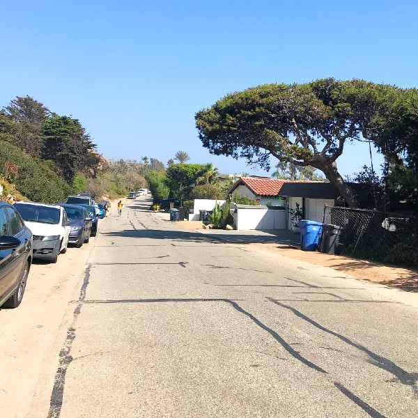The public access point is located between two homes, with unrestricted street parking along Broad Beach Road (a quiet, wealthy, seaside community). Simply walk through the open gate, down a short path, and onto the sand just a few steps away. Be mindful of locals; no loud music, trash, alcohol, etc.