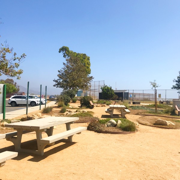 Behind the baseball fields, there’s 5 or 6 trailheads & trails that zig-zag down the hillside leading to Malibu Road and Amarillo Beach below. Google Map the park for a better (overhead) perspective of the footpaths where they’re clearly defined.