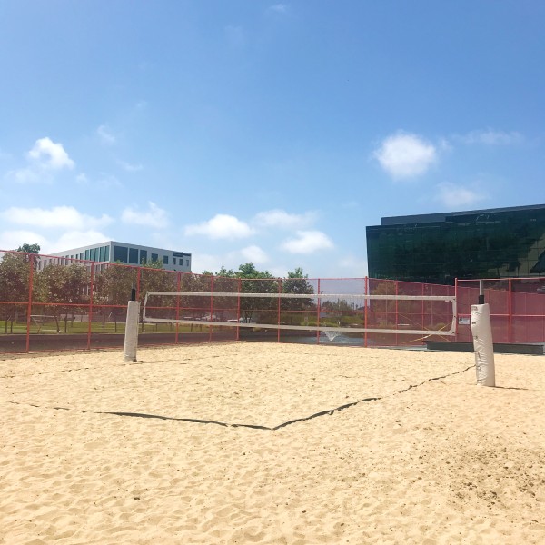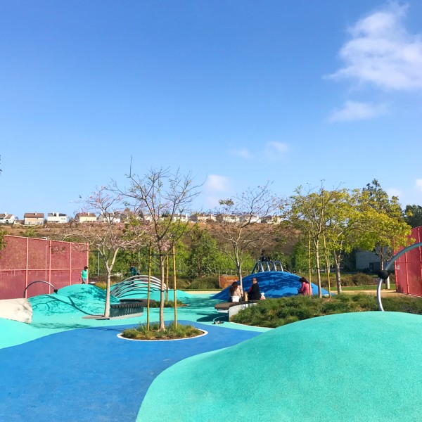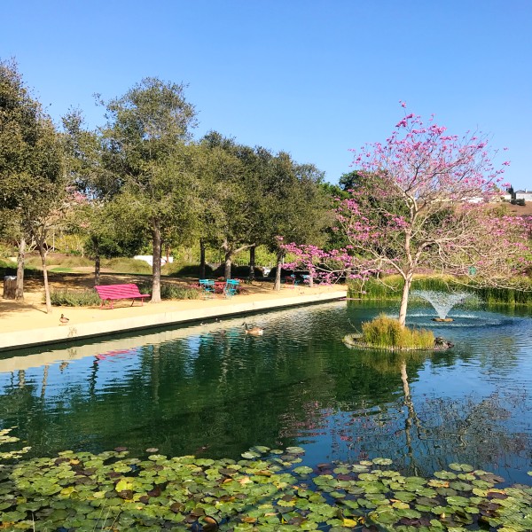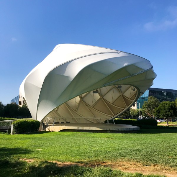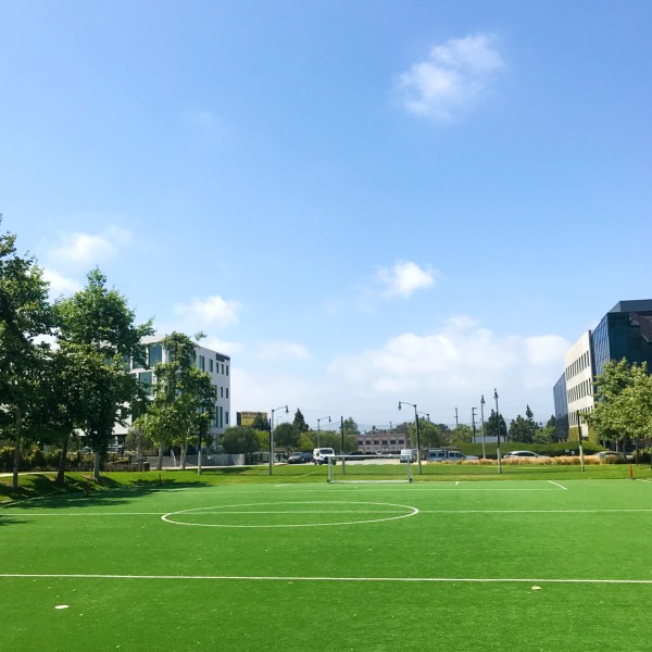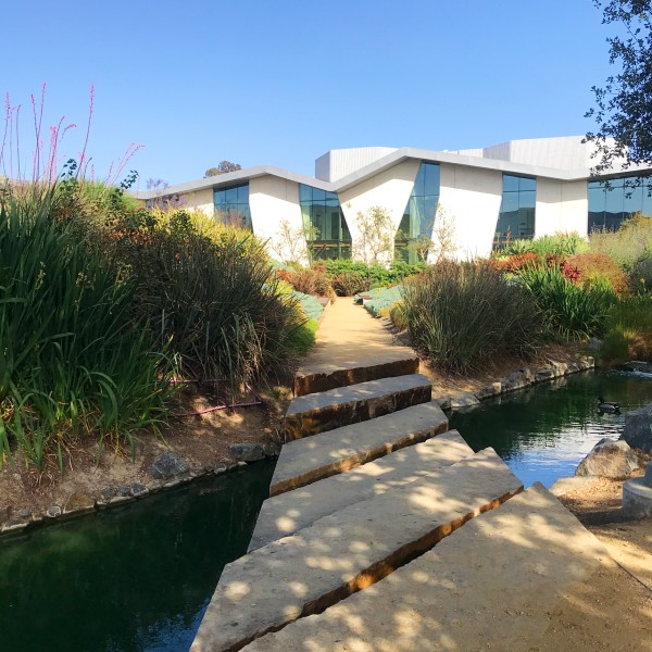Impeccably manicured park and gardens, surrounded by the LA offices of tech giants Google, Yahoo, YouTube, and Facebook several blocks away.