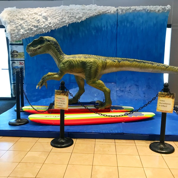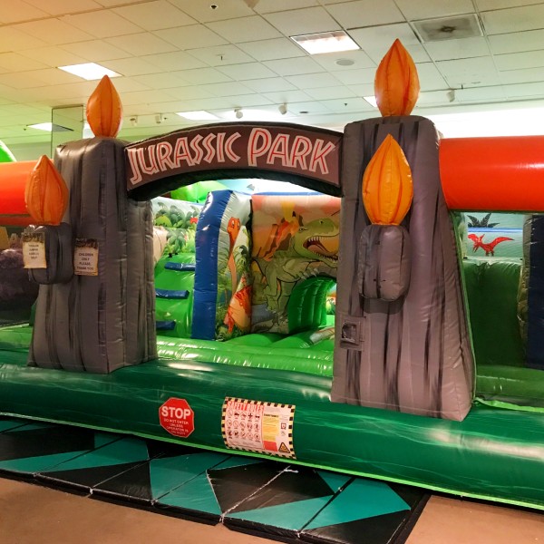 Wonder of Dinosaurs is located on Level 2 and 3 of the South Bay Galleria mall in Redondo Beach. The 2nd floor houses an impressive assortment of animatronic Dinosaurs, a carousel, train, and mini-golf course — and the 3rd floor has wall to wall bounce houses and games.
