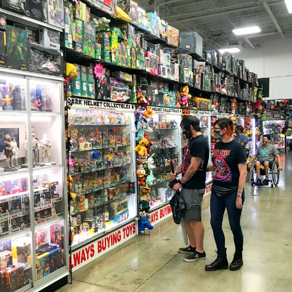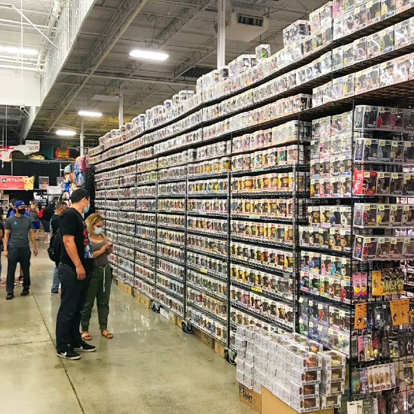 A gigantic, Costco-sized warehouse filled with Funko Pops, Pokémon cards, comic books, vintage toys, sports memorabilia, action figures, Hot Wheels, Loungefly Disney Backpacks, Lego’s, and more.